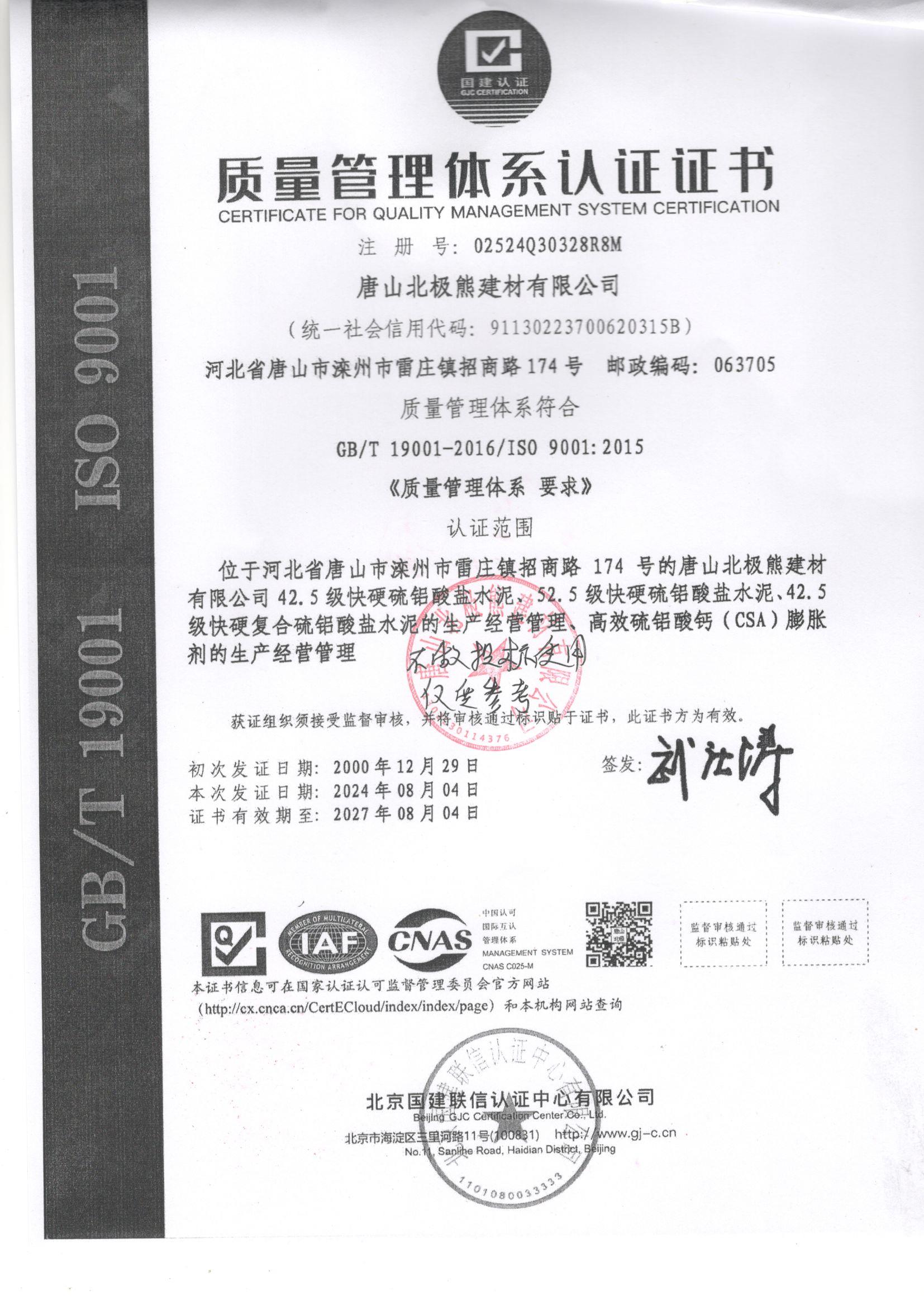 環境&質量認證證書